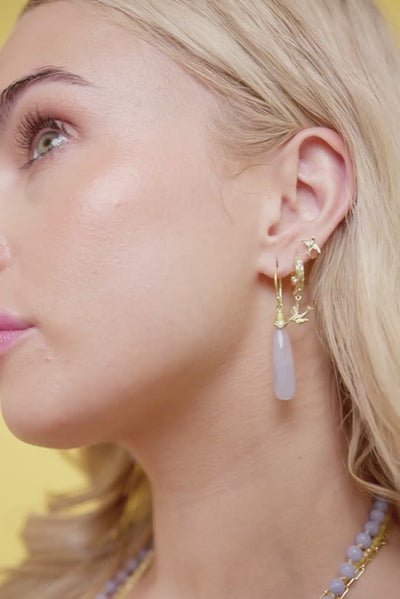 Featuring faceted blue lace agate gemstones, these earrings reflect clarity, emotional balance, and gentle strength. Blue lace agate is often associated with calm communication and easing the mind, encouraging a sense of inner peace even during busy or uncertain moments. A statement style that remains wearable and intentional, they’re created for times when you want to feel centred, soothed, and quietly confident — carrying calm with you wherever you go.