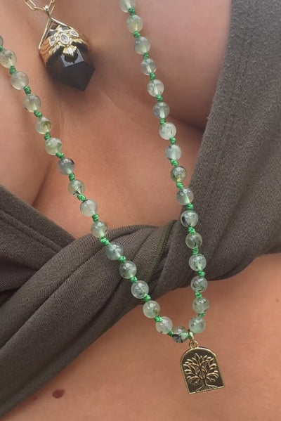 Prehnite is known as a stone of peace and protection, encouraging inner calm and alignment with the heart. Finished with our gold Tree of Life pendant - inscribed on the reverse with 'I am grounded, guided and growing'. This necklace is both a meditation aid and a meaningful talisman, carrying the energy of balance, resilience, and renewal wherever you go.